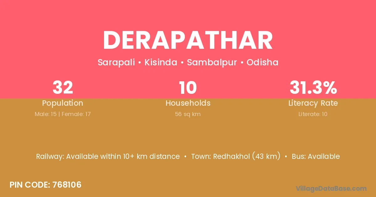 According to Census 2011 information, the village code of Derapathar village is 768110.