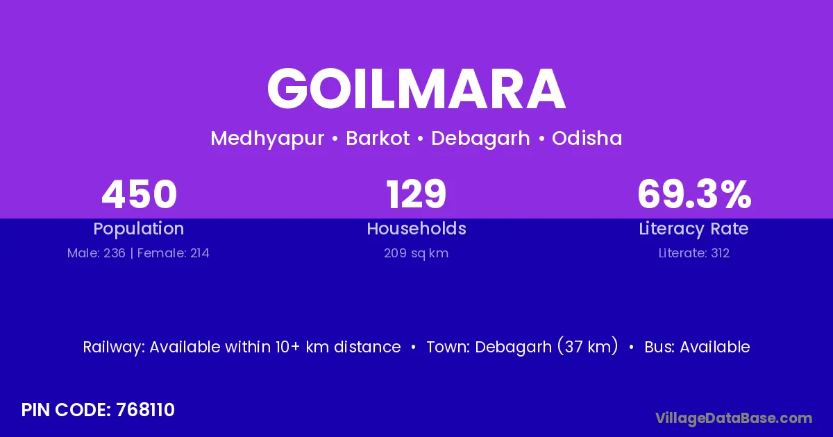 Debagarh (37 km) is the nearest town to Goilmara village for major economic activities and is located approximately 37 km away.