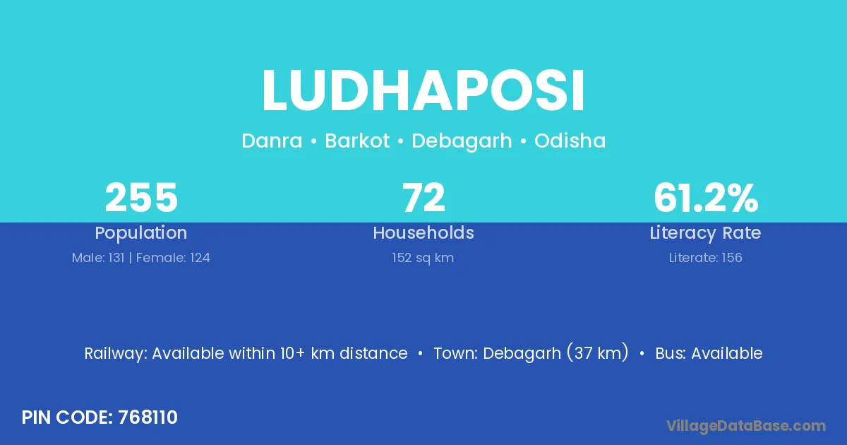 Debagarh (37 km) is the nearest town to Ludhaposi village for major economic activities and is located approximately 37 km away.