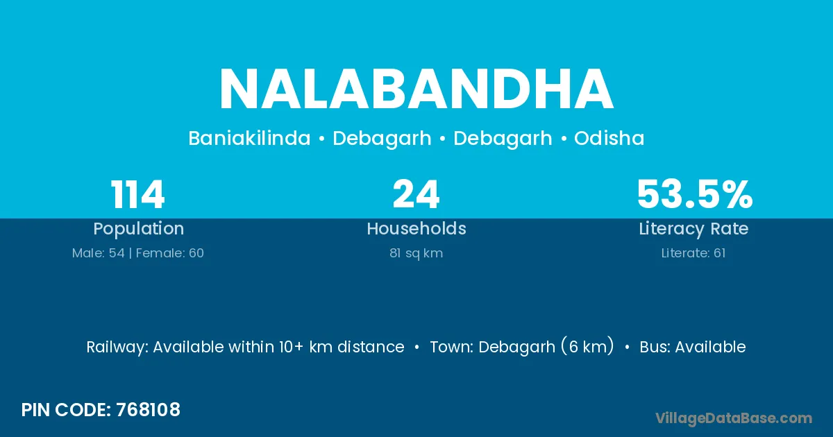 Debagarh (25 km) is the nearest town to Nalabandha village for major economic activities and is located approximately 25 km away.