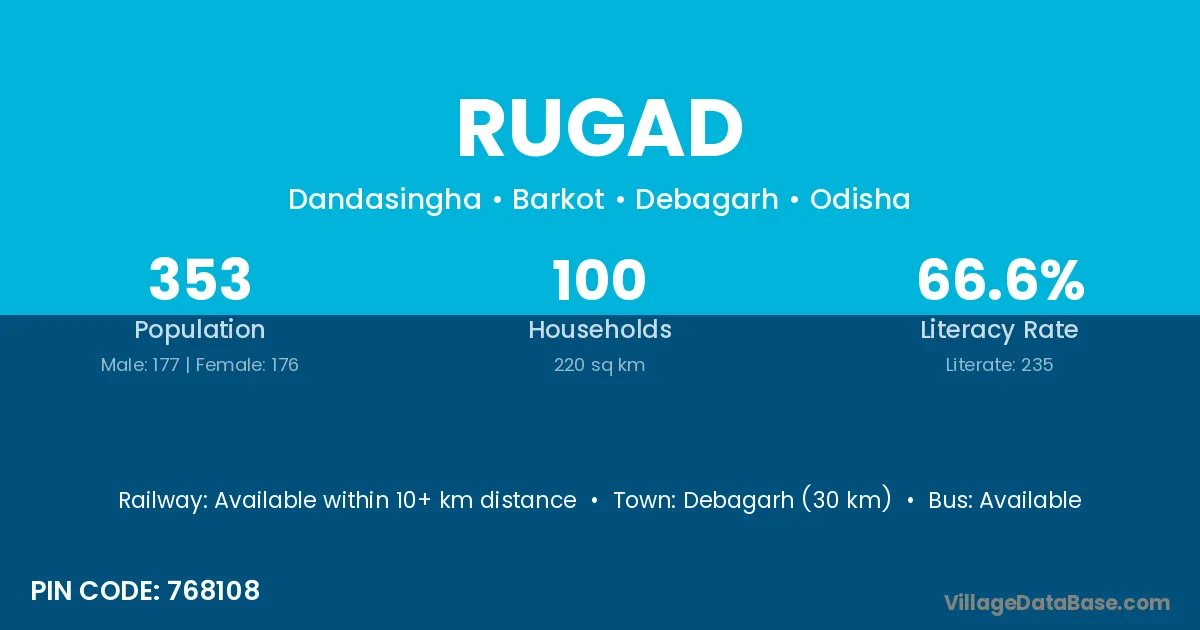 Debagarh (30 km) is the nearest town to Rugad village for major economic activities and is located approximately 30 km away.