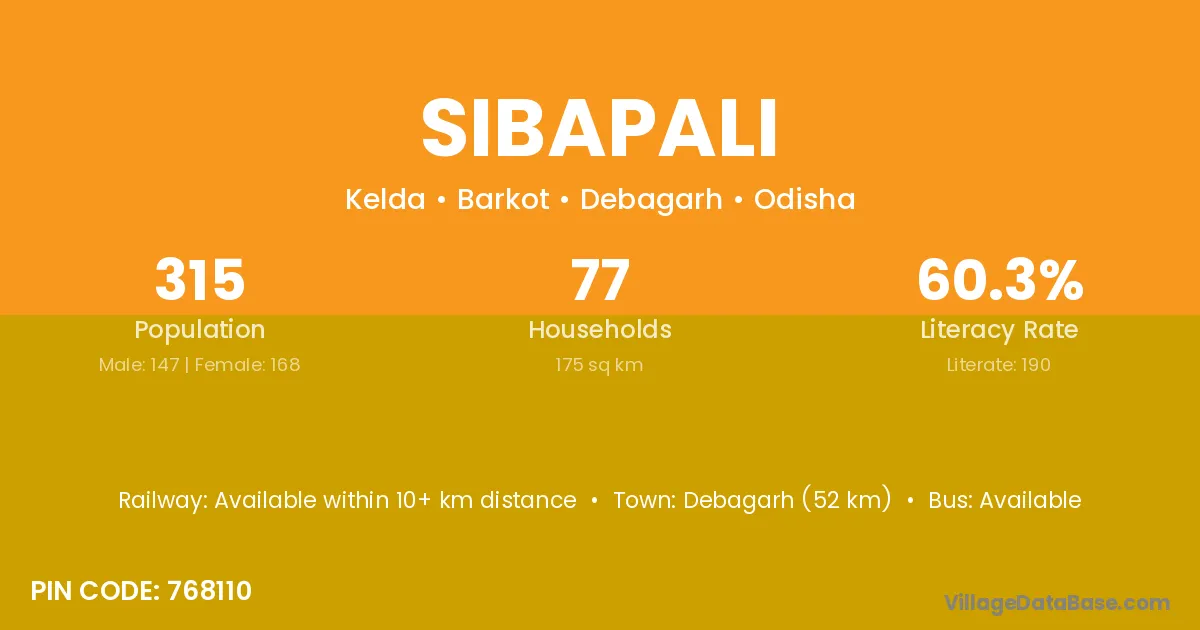 Debagarh (52 km) is the nearest town to Sibapali village for major economic activities and is located approximately 52 km away.