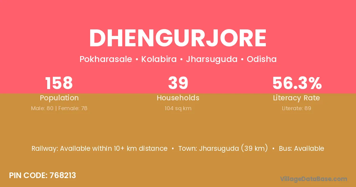 Dhengurjore village has a total population of 611 people, of which 308 are males and 303 are females.