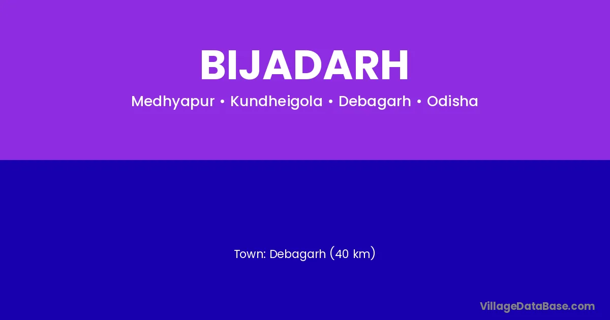 Debagarh (40 km) is the nearest town to Bijadarh village for major economic activities and is located approximately 40 km away.