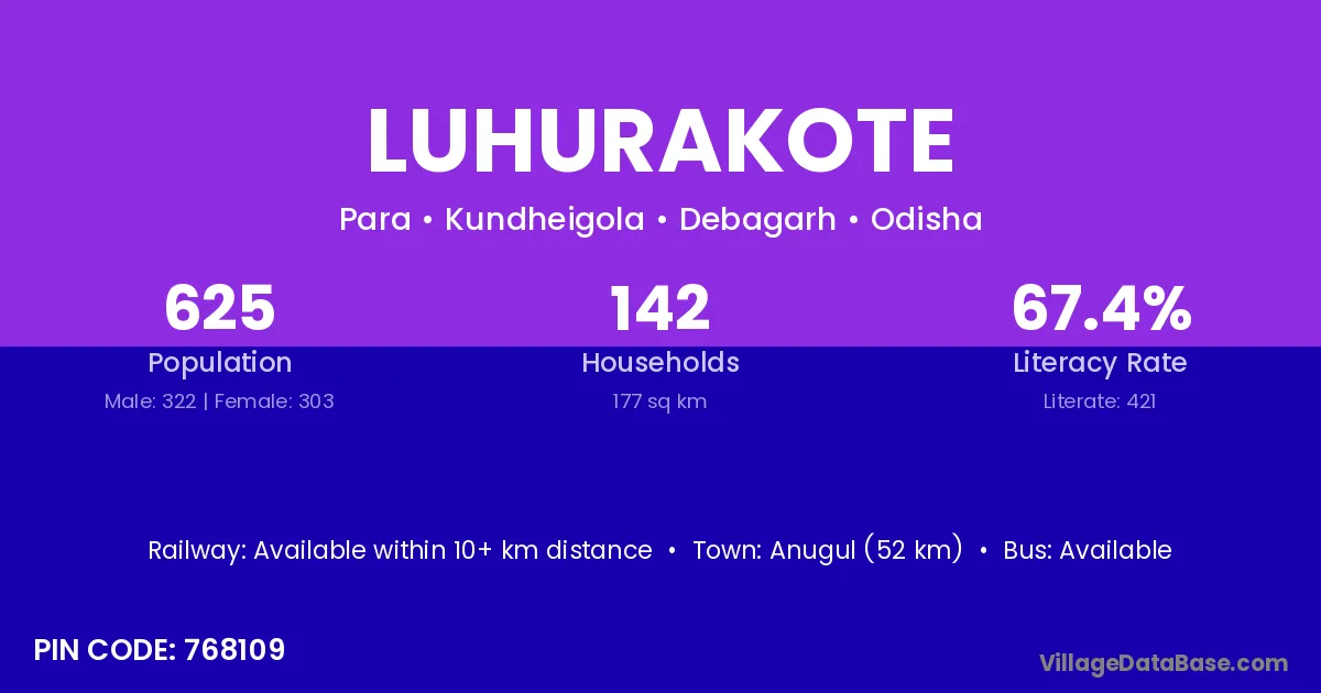 Anugul (52 km) is the nearest town to Luhurakote village for major economic activities and is located approximately 52 km away.