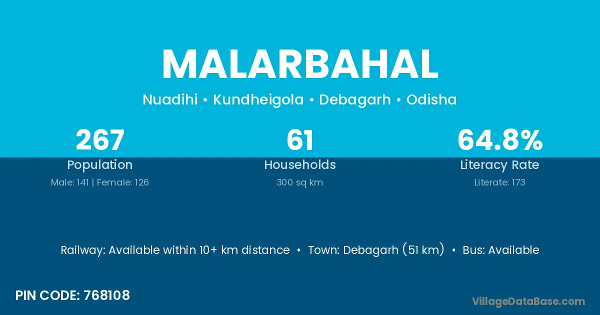 Debagarh (51 km) is the nearest town to Malarbahal village for major economic activities and is located approximately 51 km away.