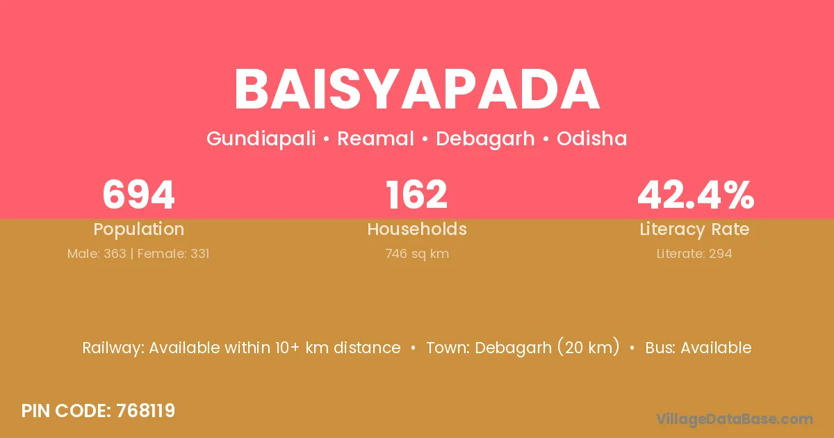 Debagarh (20 km) is the nearest town to Baisyapada village for major economic activities and is located approximately 20 km away.