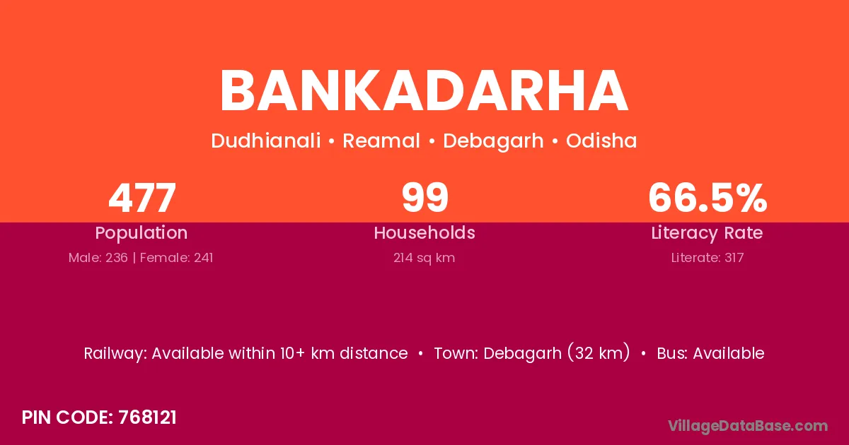 Debagarh (32 km) is the nearest town to Bankadarha village for major economic activities and is located approximately 32 km away.