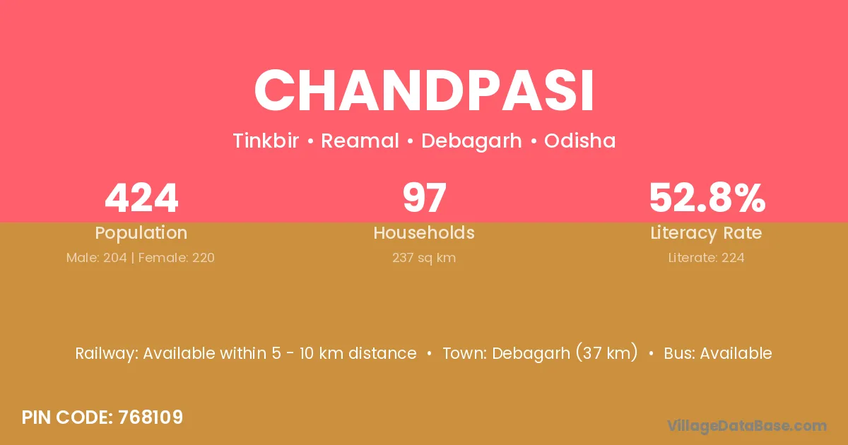 Debagarh (37 km) is the nearest town to Chandpasi village for major economic activities and is located approximately 37 km away.