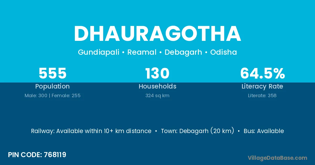 Debagarh (20 km) is the nearest town to Dhauragotha village for major economic activities and is located approximately 20 km away.