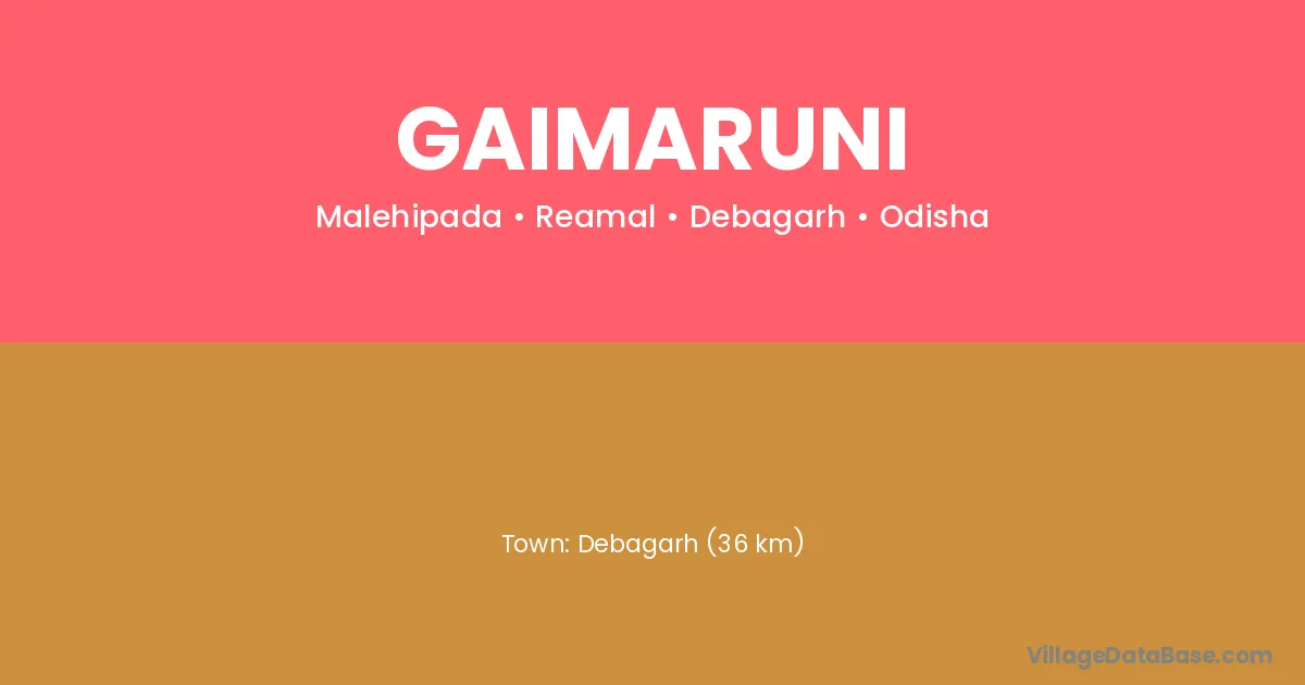 Gaimaruni village is located in the Reamal Tehsil of the Debagarh district in Odisha .