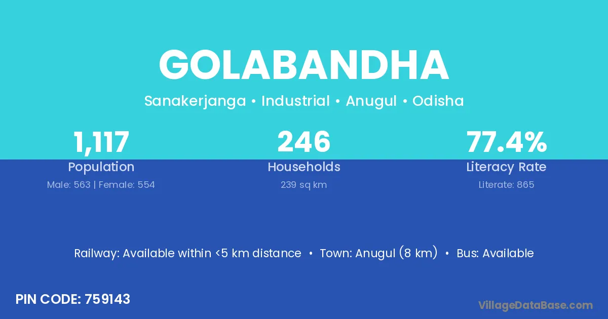 Debagarh (35 km) is the nearest town to Golabandha village for major economic activities and is located approximately 35 km away.