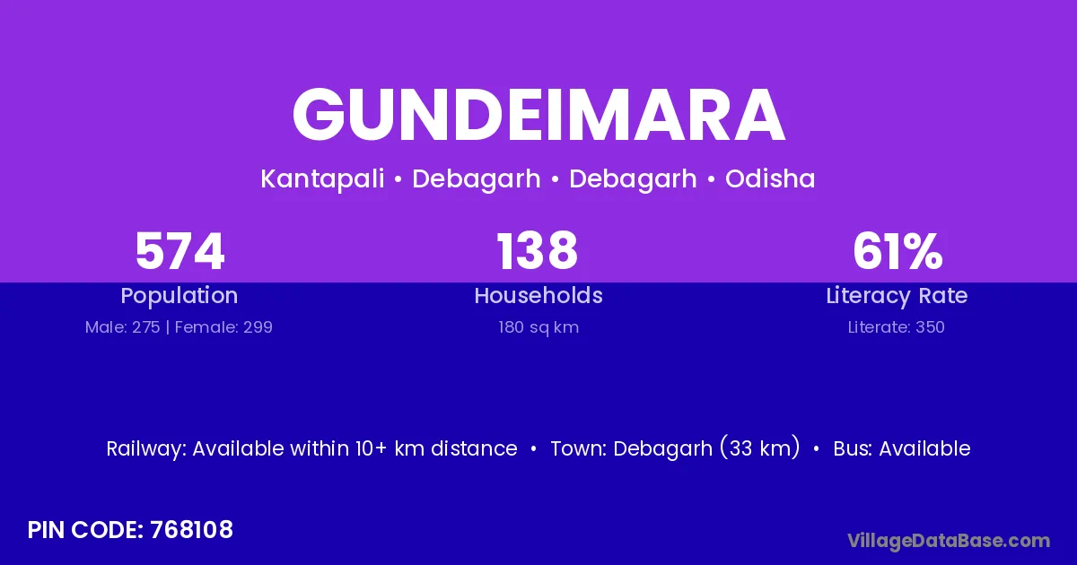 Debagarh (27 km) is the nearest town to Gundeimara village for major economic activities and is located approximately 27 km away.