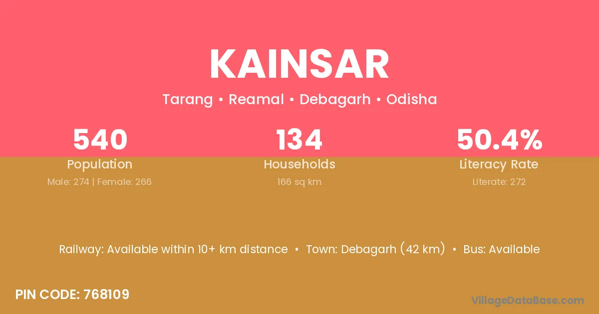 Debagarh (42 km) is the nearest town to Kainsar village for major economic activities and is located approximately 42 km away.