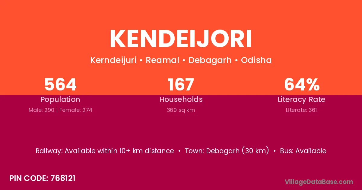 Debagarh (30 km) is the nearest town to Kendeijori village for major economic activities and is located approximately 30 km away.