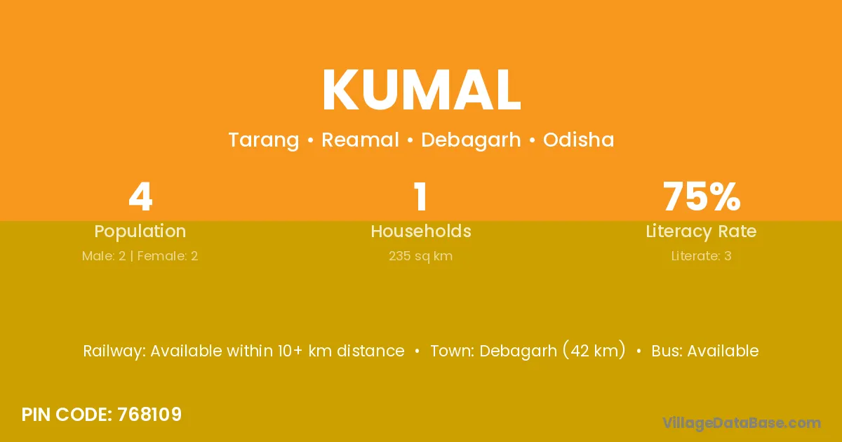 Debagarh (42 km) is the nearest town to Kumal village for major economic activities and is located approximately 42 km away.