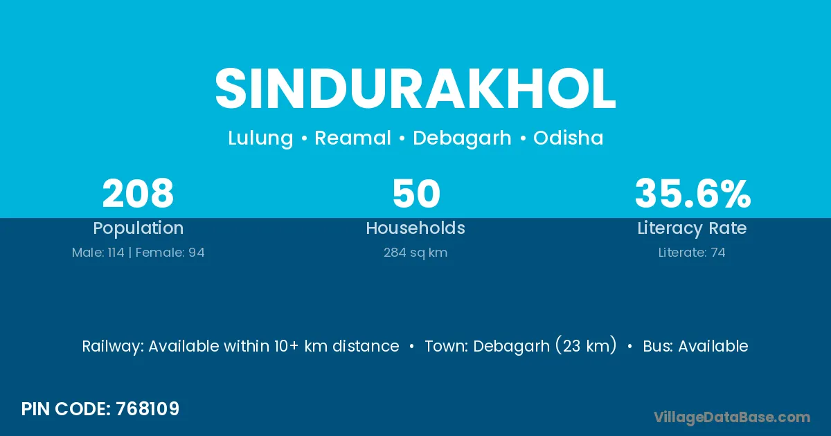 Debagarh (23 km) is the nearest town to Sindurakhol village for major economic activities and is located approximately 23 km away.