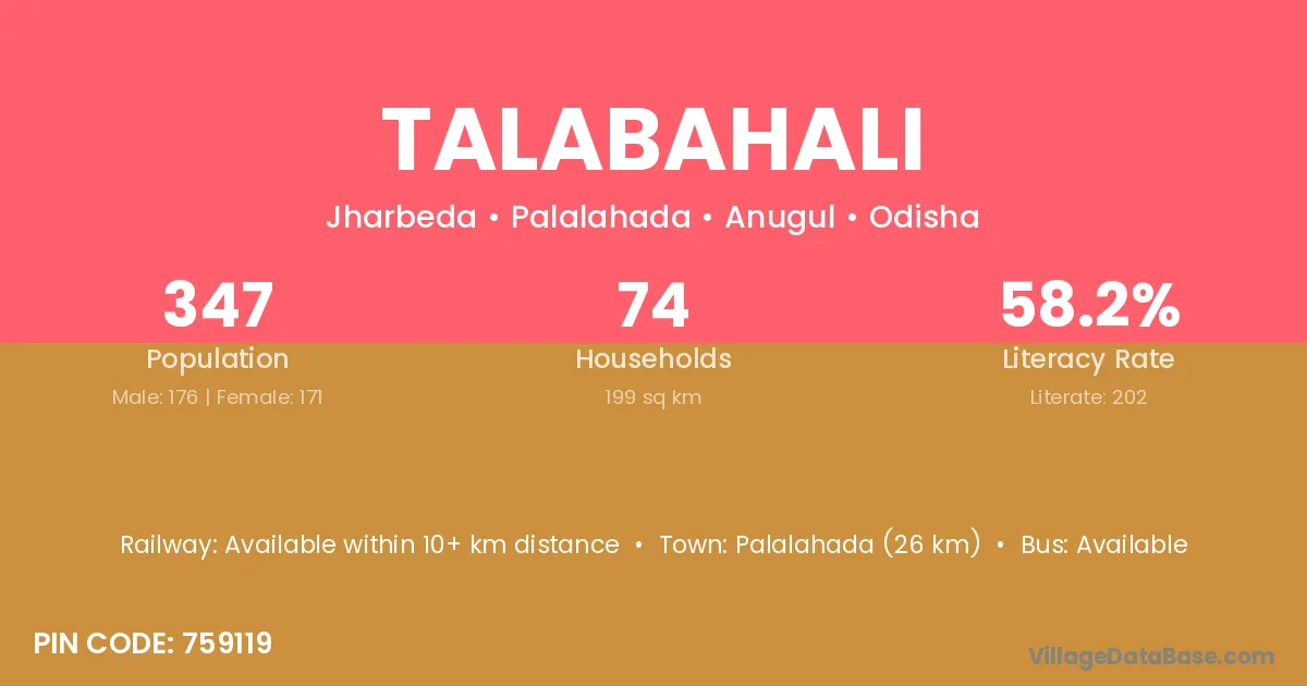 Debagarh (25 km) is the nearest town to Talabahali village for major economic activities and is located approximately 25 km away.
