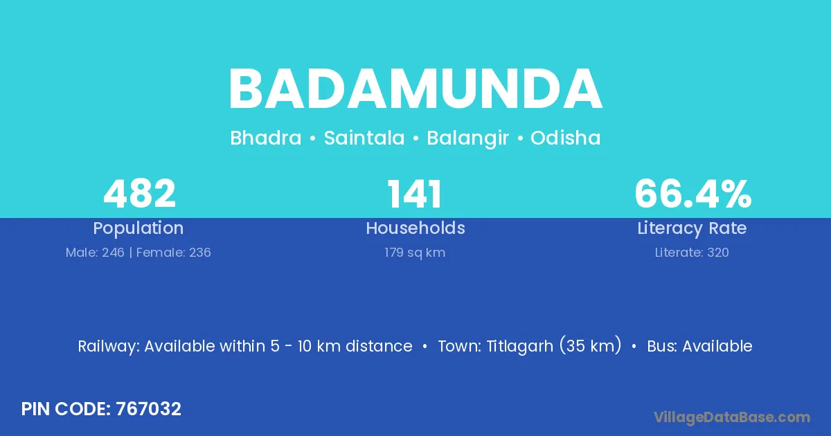 According to Census 2011 information, the village code of Badamunda village is 759121.