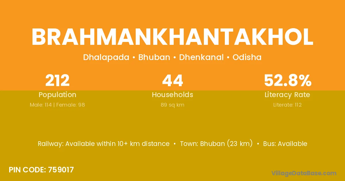 Bhuban (23 km) is the nearest town to Brahmankhantakhol village for major economic activities and is located approximately 23 km away.
