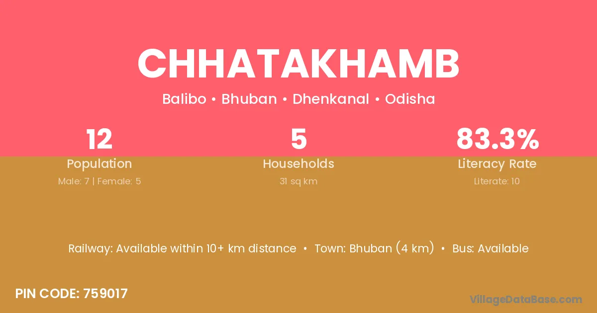 Chhatakhamb village has a total population of 12 people, of which 7 are males and 5 are females.