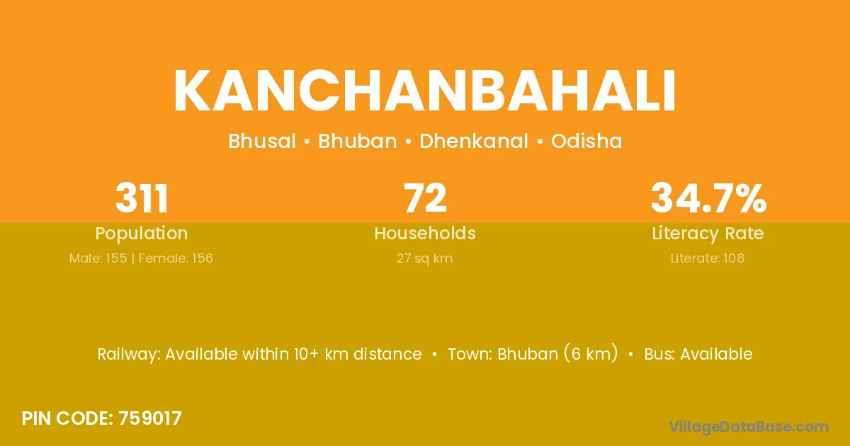 Bhuban (6 km) is the nearest town to Kanchanbahali village for major economic activities and is located approximately 6 km away.