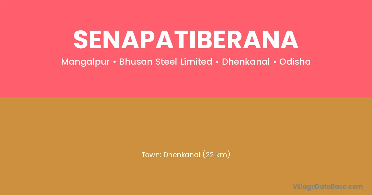 Dhenkanal (22 km) is the nearest town to Senapatiberana village for major economic activities and is located approximately 22 km away.