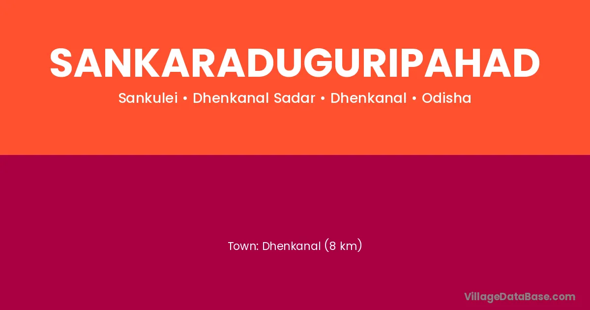 Dhenkanal (8 km) is the nearest town to Sankaraduguripahad village for major economic activities and is located approximately 8 km away.