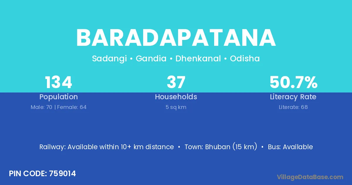 Baradapatana village has a total population of 134 people, of which 70 are males and 64 are females.