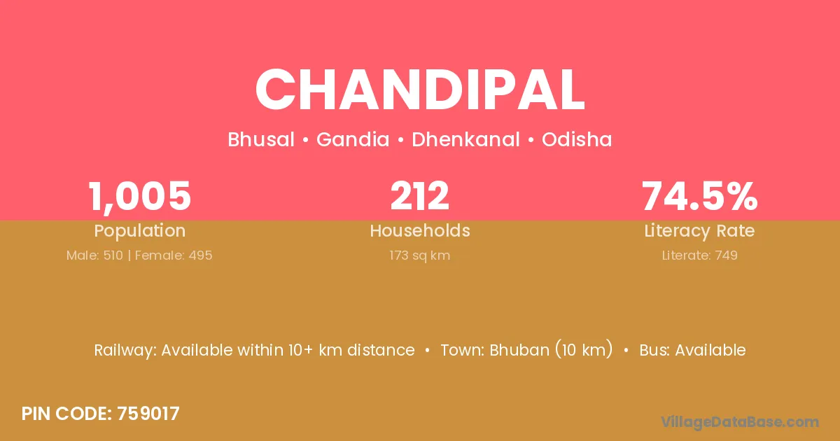 According to Census 2011 information, the village code of Chandipal village is 759017.