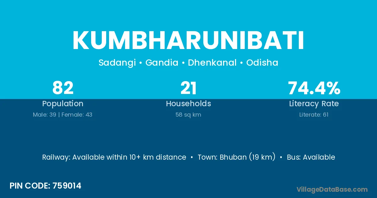 Kumbharunibati village has a total population of 82 people, of which 39 are males and 43 are females.