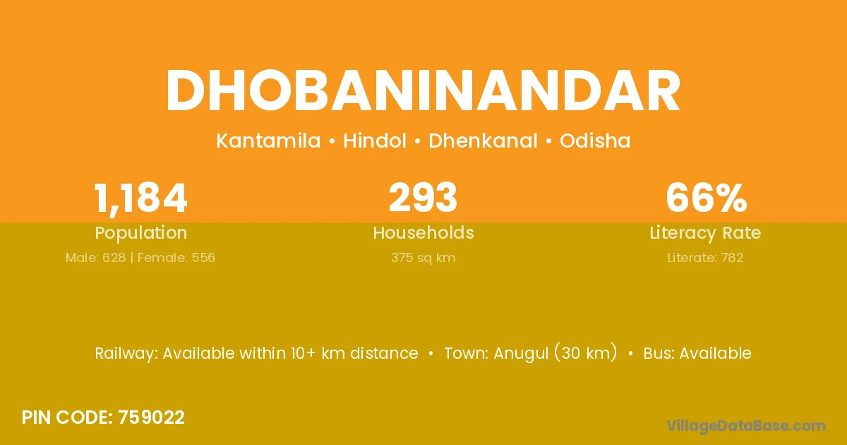 Anugul (30 km) is the nearest town to Dhobaninandar village for major economic activities and is located approximately 30 km away.
