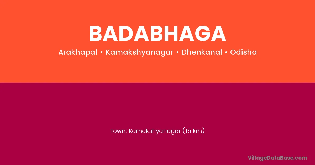 Kamakshyanagar (15 km) is the nearest town to Badabhaga village for major economic activities and is located approximately 15 km away.