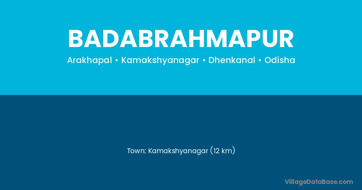 Kamakshyanagar (12 km) is the nearest town to Badabrahmapur village for major economic activities and is located approximately 12 km away.