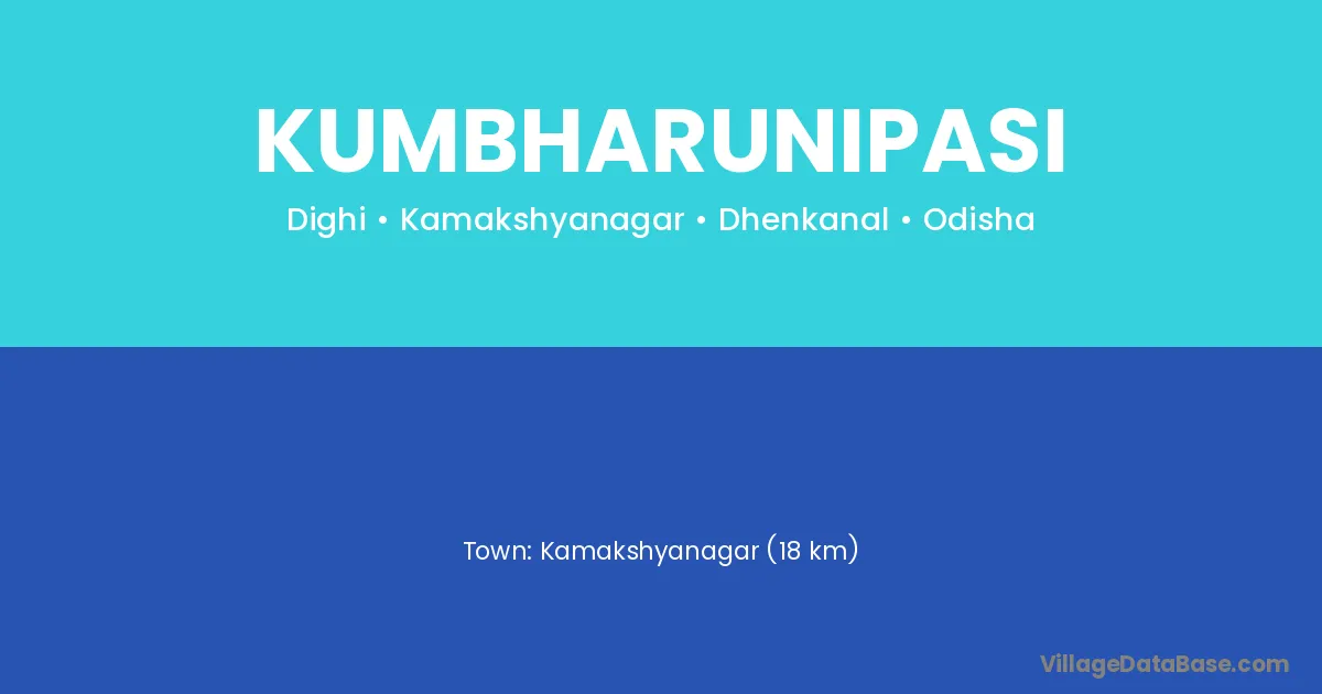 Kamakshyanagar (18 km) is the nearest town to Kumbharunipasi village for major economic activities and is located approximately 18 km away.