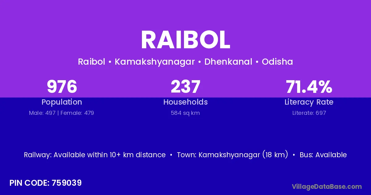 According to Census 2011 information, the village code of Raibol village is 759039.