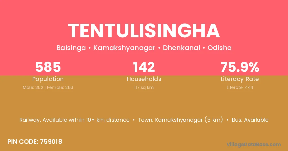 Kamakshyanagar (5 km) is the nearest town to Tentulisingha village for major economic activities and is located approximately 5 km away.