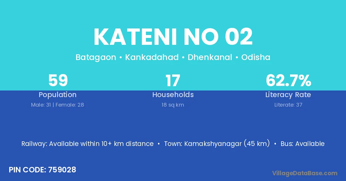Kateni No 02 village has a total population of 59 people, of which 31 are males and 28 are females.