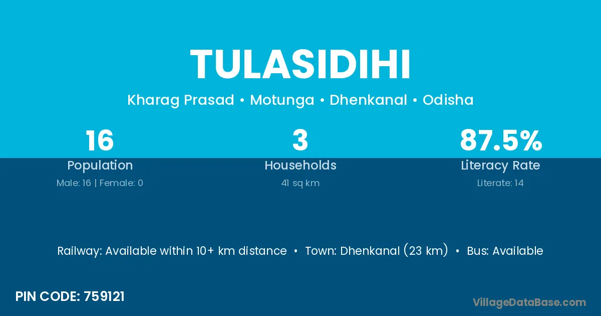 Tulasidihi village has a total population of 16 people, of which 16 are males and 0 are females.