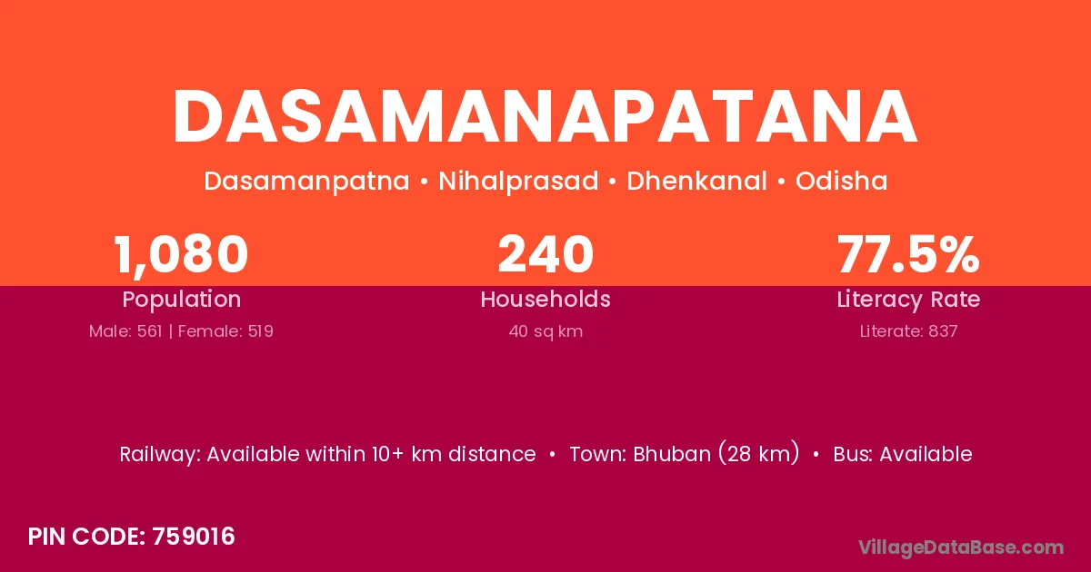 Dasamanapatana village has a total population of 1,080 people, of which 561 are males and 519 are females.