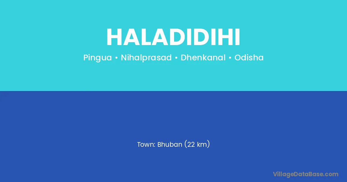 Bhuban (22 km) is the nearest town to Haladidihi village for major economic activities and is located approximately 22 km away.
