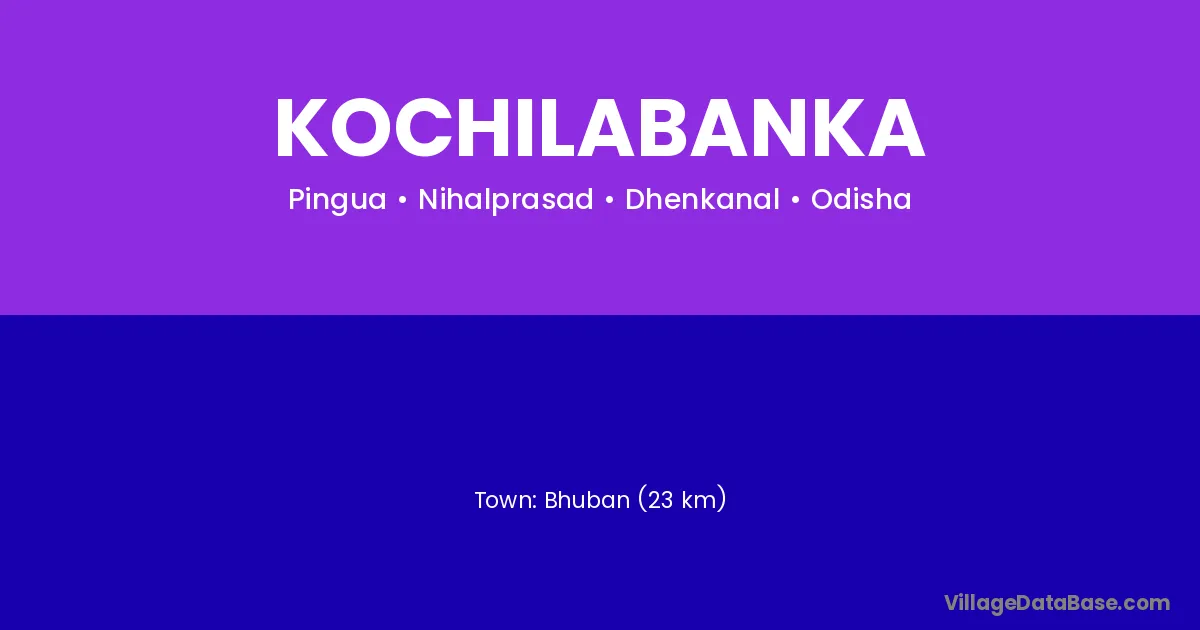 Bhuban (23 km) is the nearest town to Kochilabanka village for major economic activities and is located approximately 23 km away.