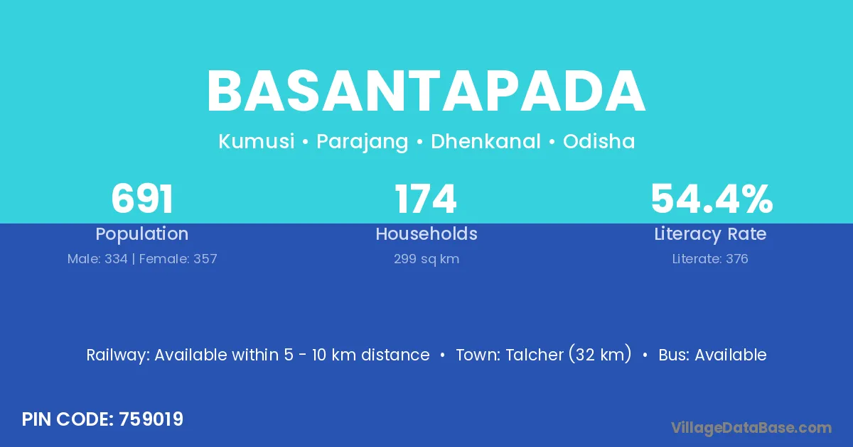 Talcher (32 km) is the nearest town to Basantapada village for major economic activities and is located approximately 32 km away.