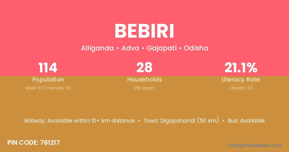 Bebiri village is located in the Adva Tehsil of the Gajapati district in Odisha .