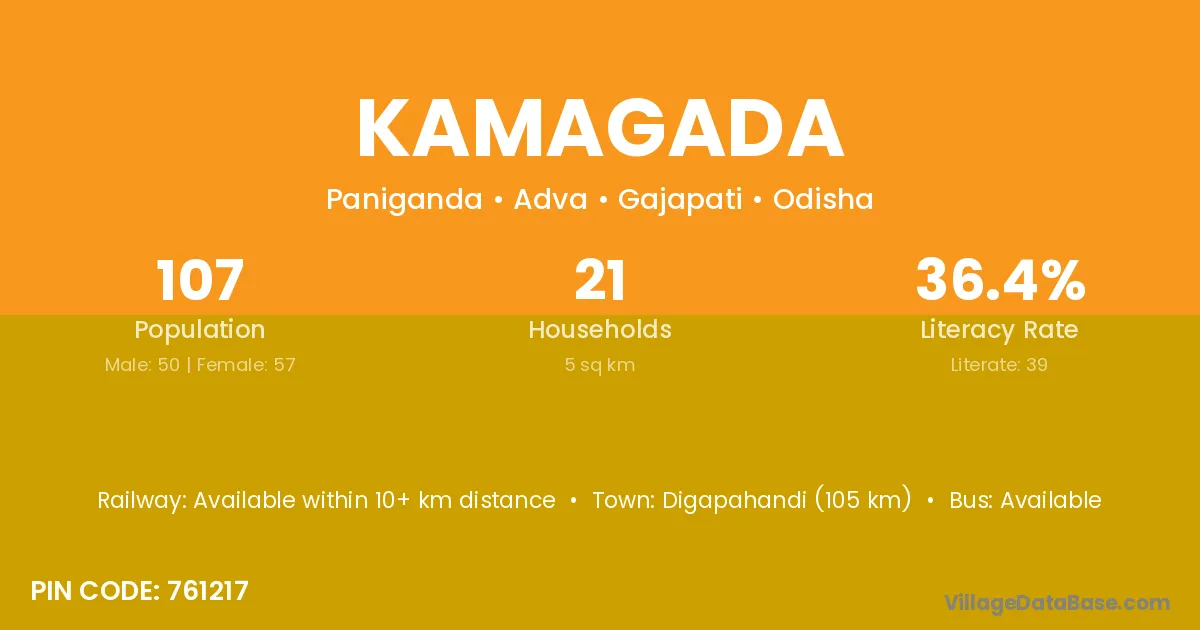 Digapahandi (105 km) is the nearest town to Kamagada village for major economic activities and is located approximately 105 km away.