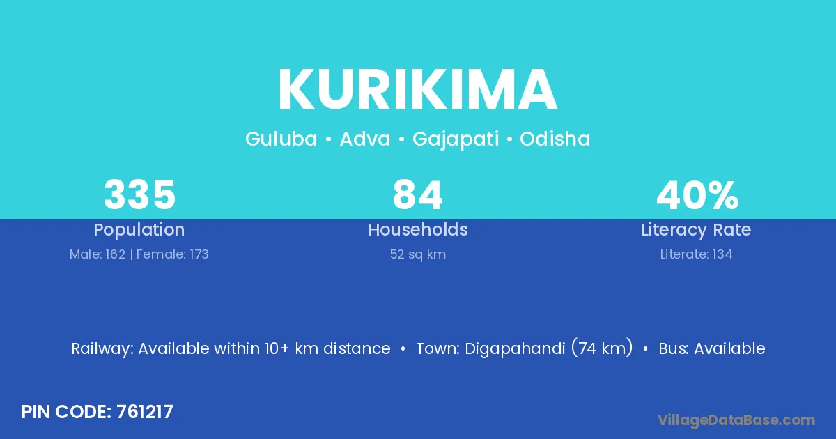 Kurikima village is located in the Adva Tehsil of the Gajapati district in Odisha .