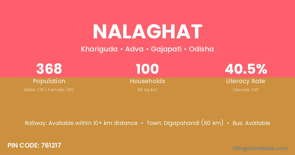 Digapahandi (60 km) is the nearest town to Nalaghat village for major economic activities and is located approximately 60 km away.