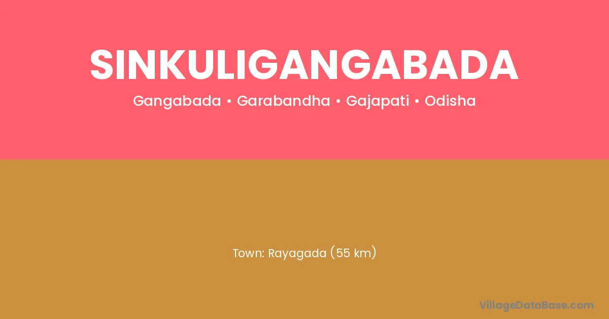 Rayagada (55 km) is the nearest town to Sinkuligangabada village for major economic activities and is located approximately 55 km away.