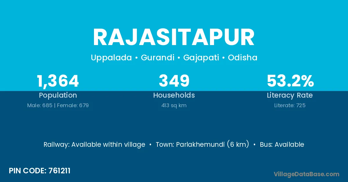 Parlakhemundi (6 km) is the nearest town to Rajasitapur village for major economic activities and is located approximately 6 km away.
