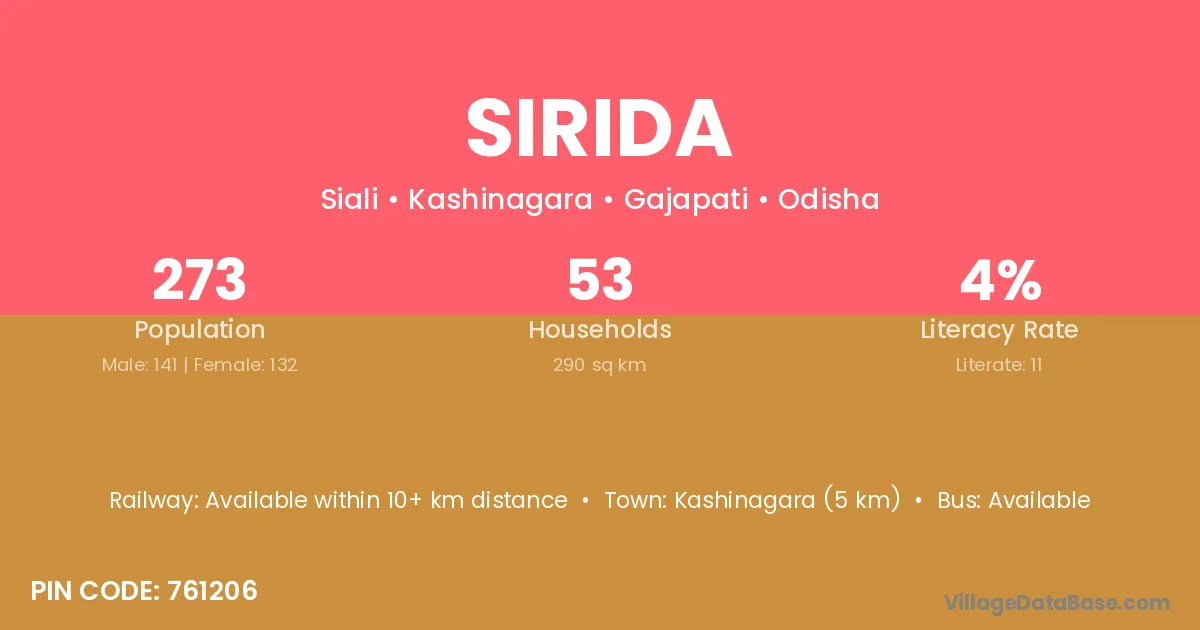 Sirida village is located in the Kashinagara Tehsil of the Gajapati district in Odisha .